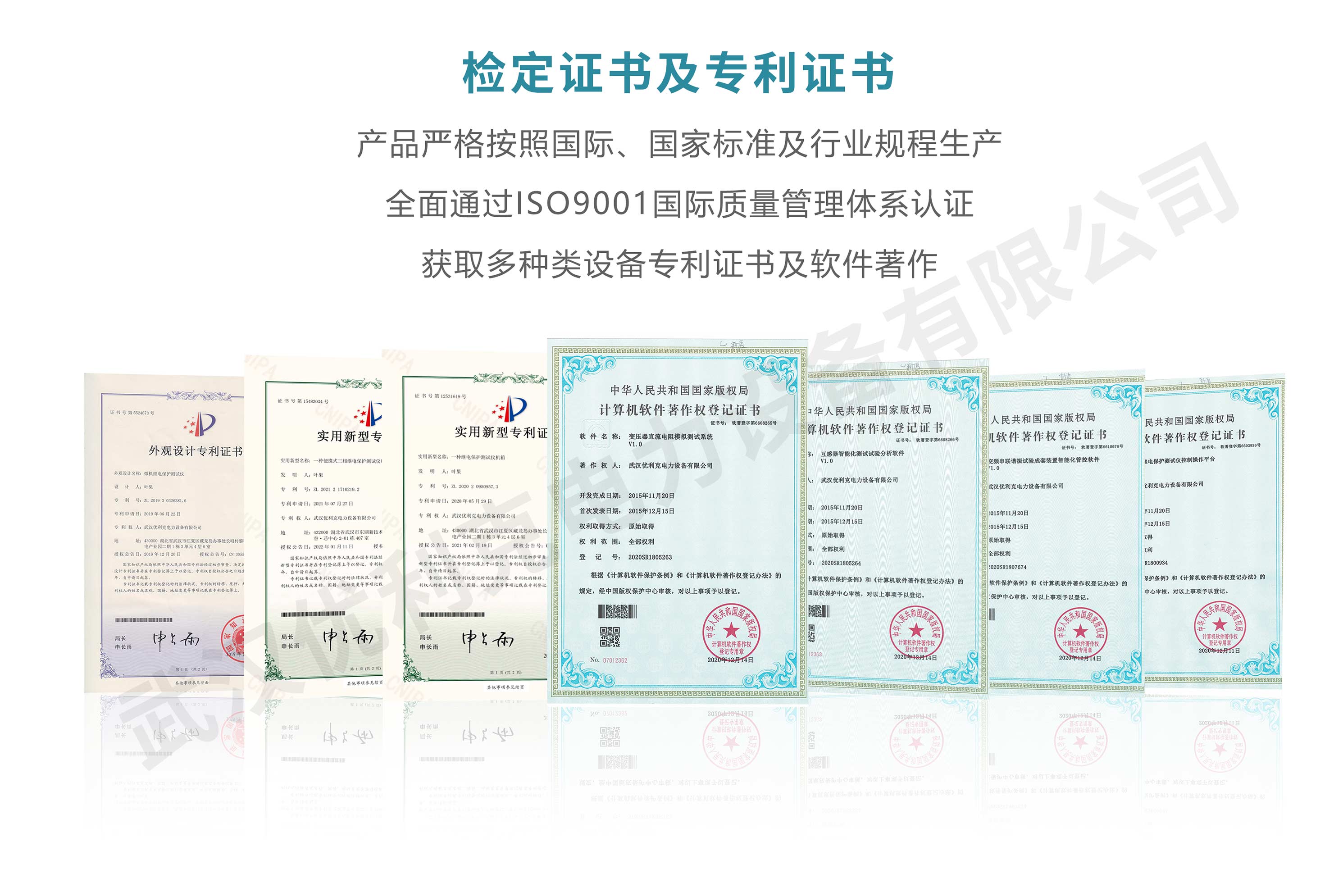 企業產品嚴格按照國際、國家標準及行業規程生產,通過國家、各省級、市級電力研究所、計量中心及電力權威部門的檢測,全面通過ISO9001國際質量管理體系認證、中華人民共和國制造計量器具許可證、GB/T19001-2016質量管理體系要求、GB/T24001-2016環境管理體系要求、GB/T45001-2020職業健康安全管理體系要求。