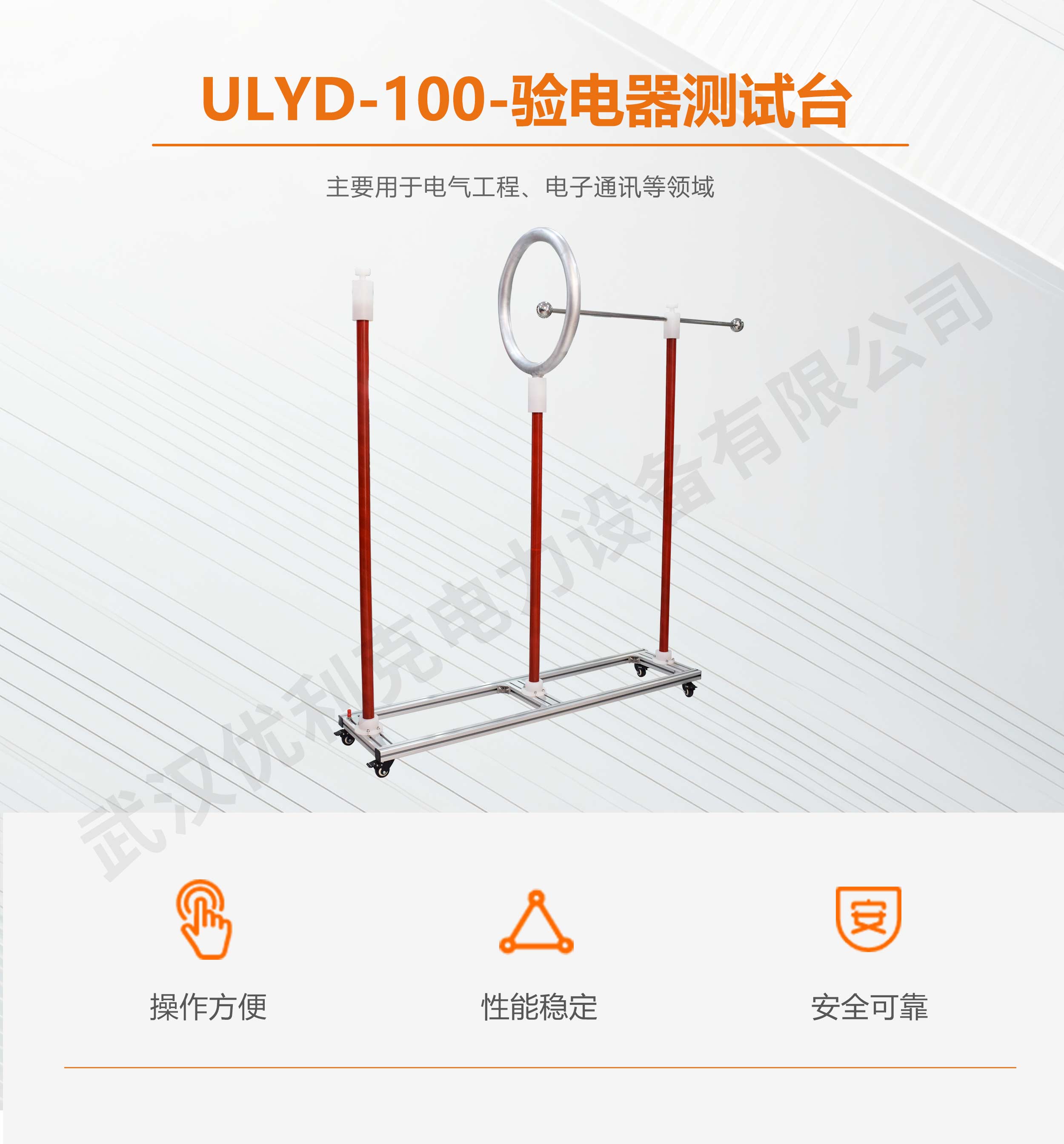 1、驗電器測試臺高壓電極為球形,接地電極為環形結構。